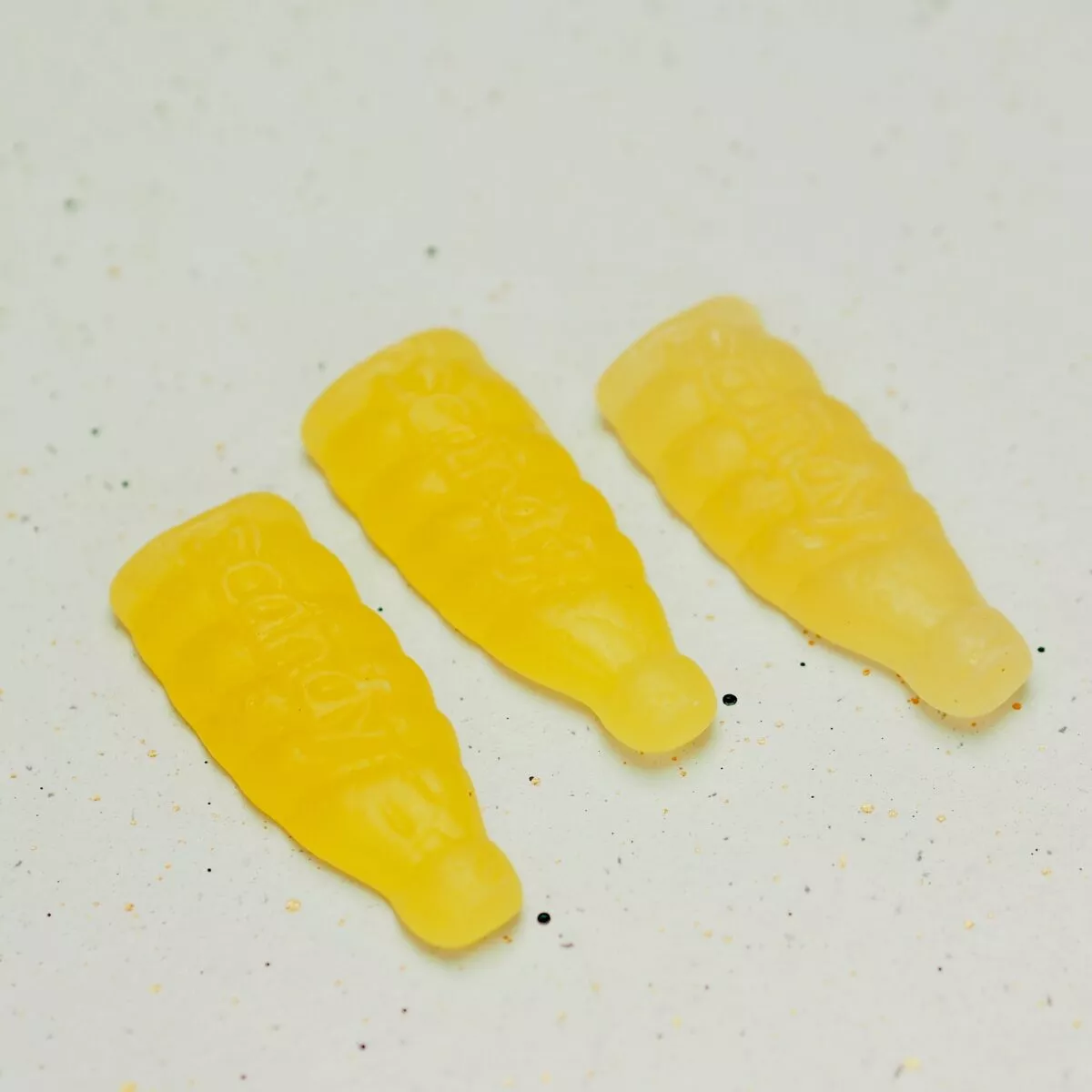 Zucker, Invertzuckersirup, Wasser, Maisstärke, Glucosesirup, Säure (Zitronensäure), Aroma, Oberflächenbehandlungsmittel (E903, Kokosöl), Pflanzenöl, Farbstoff (E100, E120). |