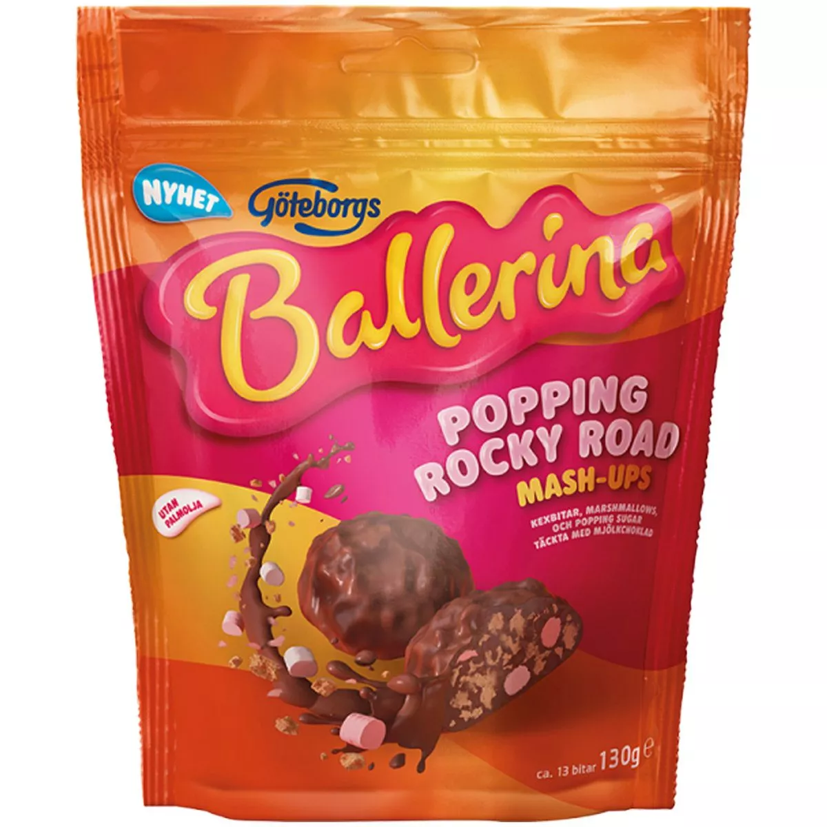 Vollmilchschokolade 77% (Zucker, MILCHPULVER, Kakaomasse, Kakaobutter, Emulgator (Lecithin), Vanillin, Salz), Biskuitstücke 14% (WEIZENmehl, Malzmehl (aus WEIZEN), Zucker, WEIZENSTÄRKE, Backpulver (Natriumbicarbonat), Salz, Aroma), Marshmallows 5 % (Glukose-Fruktose-Sirup, Zucker, Wasser, Gelatine, Dextrose, Stärke, natürliches Vanillearoma, Farbstoff (Rote Bete)), Knallbonbons 4 % (Zucker, Glukosesirup, LACTOS, Kohlensäure).Kann Spuren von NUTS, PEANUTS und EIER enthalten. |