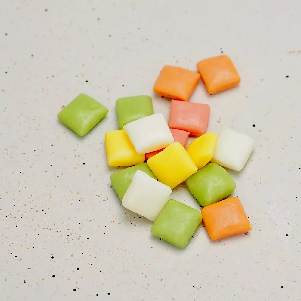 Glukosesirup, Zucker, Wasser, Pflanzenöle (Palm-, Shea-, Kokosnuss, in variierenden Anteilen), Feuchthaltemittel (Sorbit), Gelatine, Säure (Zitronensäure), Aromastoffe, Beschichtungsmittel (Carnaubawachs), Farbmittel (E120, E141, E160a). |