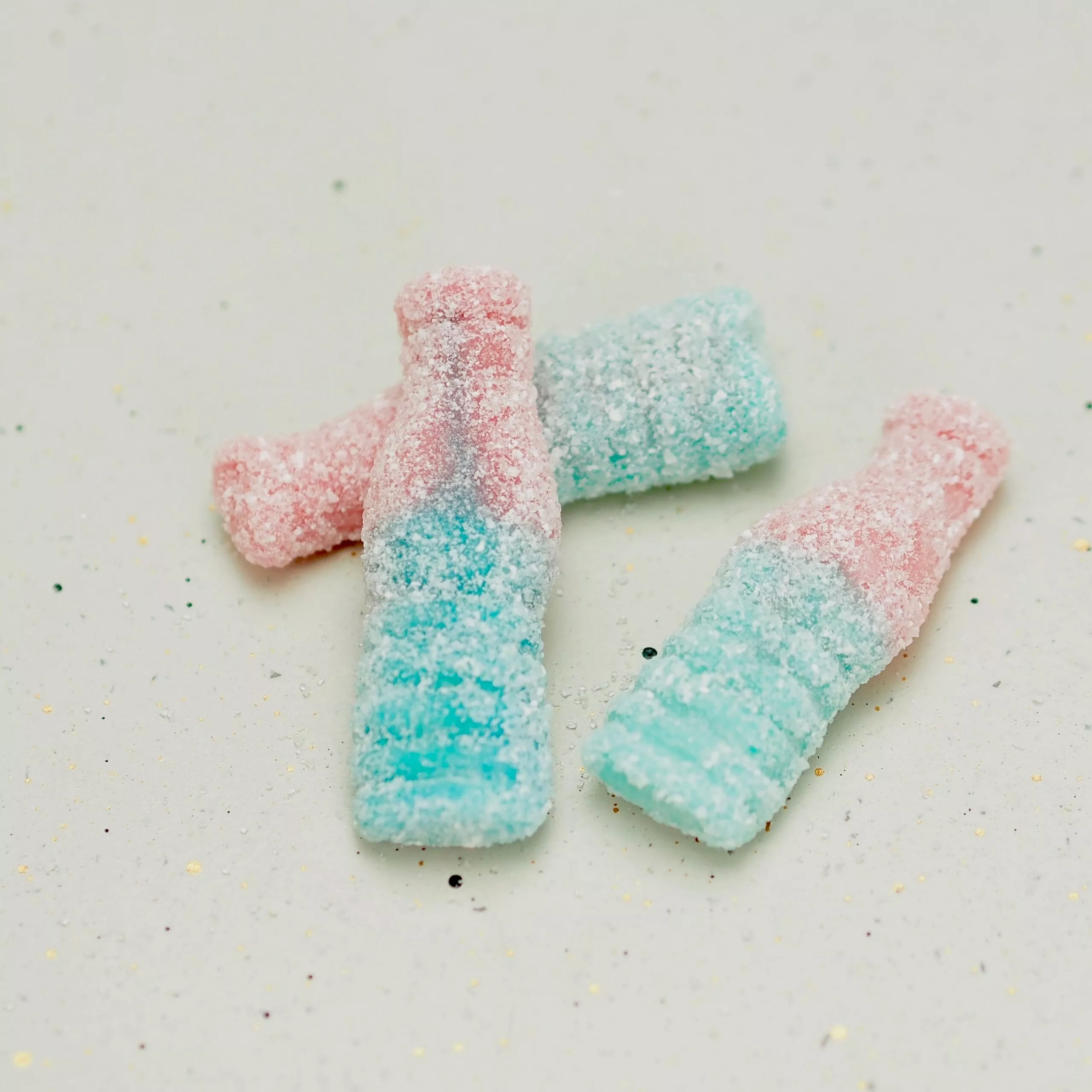 Glukosesirup, Zucker, Gelatine, Säure (Zitronensäure), Färbemittel (E170, E120, E133), vollständig hydriertes Palmfett, Aroma. |