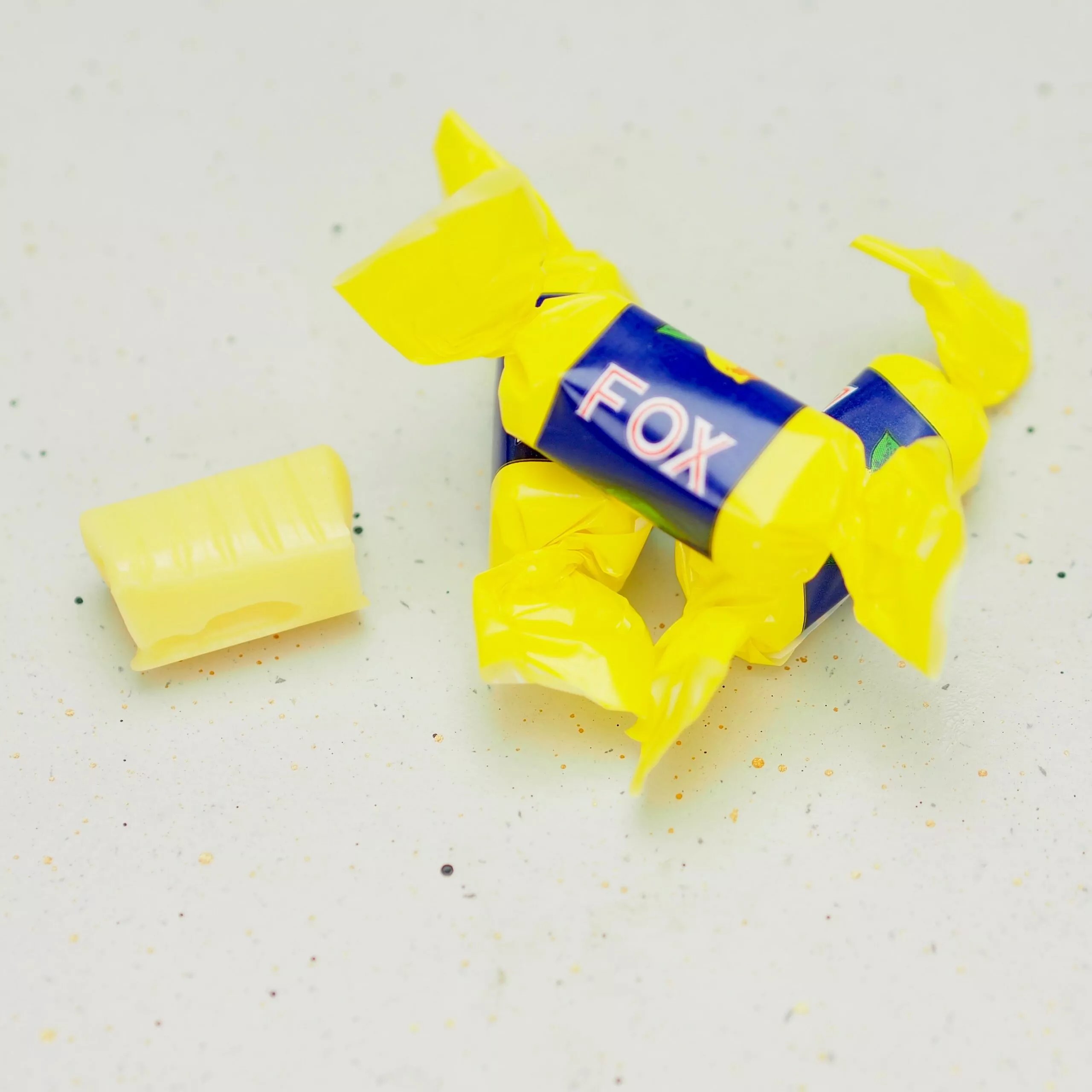 Zucker, Glukosesirup, vollständig gehärtetes Kokosfett, Feuchthaltemittel (Sorbit), Säure (Zitronensäure), Gelatine, Farbstoff (E161b), Aroma. |