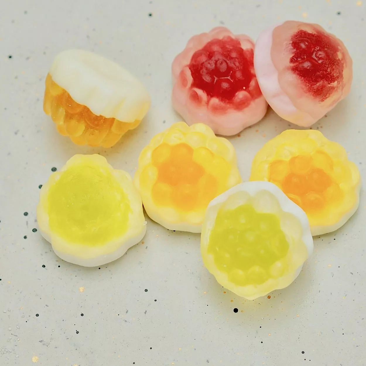 Glukosesirup, Zucker, Dextrose, Gelatine, Fruchtpflanzenkonzentrat: (Himbeere, Mango, Orange, Karotte, Brennnessel, Spinat, Hibiskus, Zitrone, Distel), Säureregulatoren: (Zitronensäure, Milchsäure), Aromastoffe, Oberflächenbehandlung: (Bienenwachs, Carnaubawachs), Antioxidantien. |