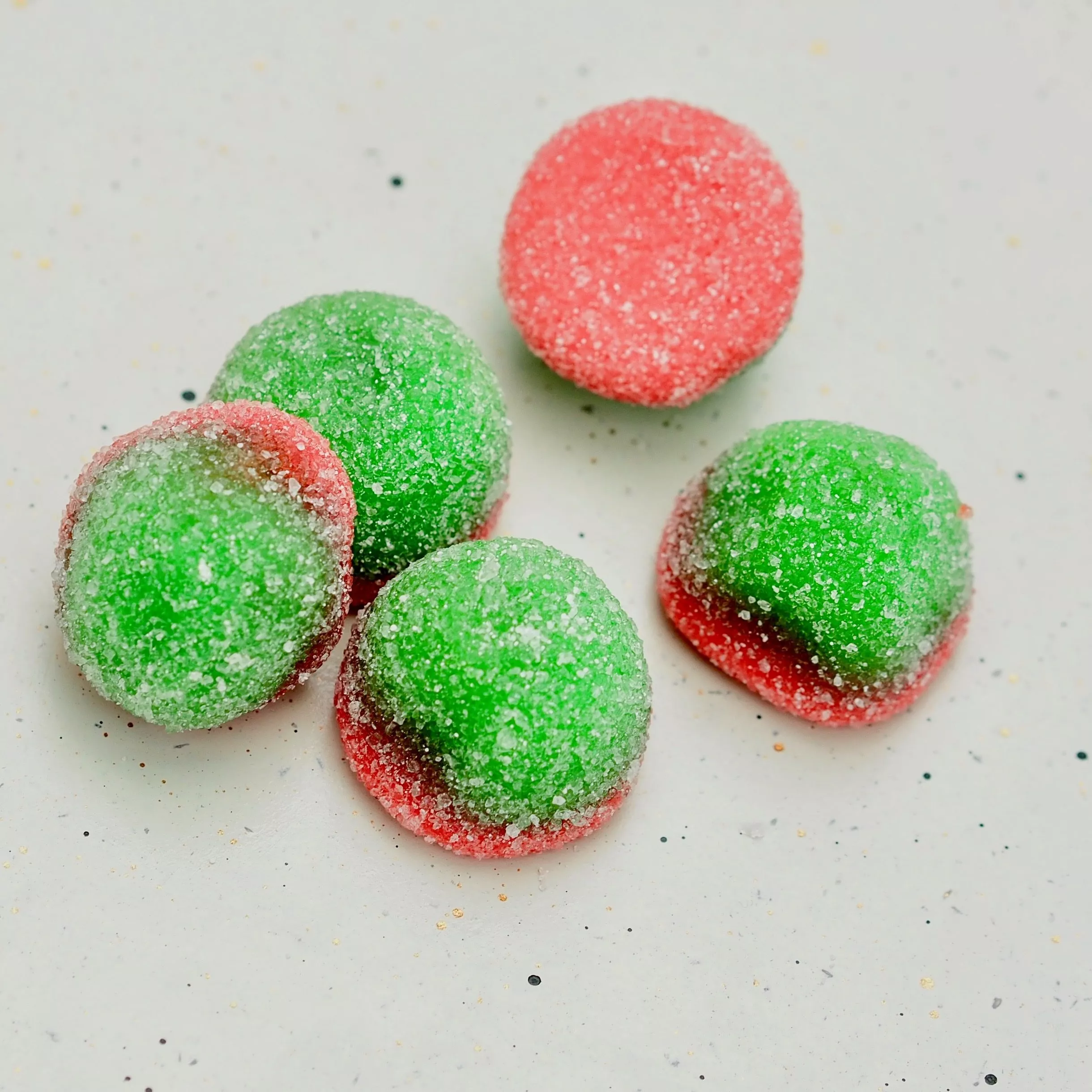 Glukosesirup, Zucker, Maisstärke, Gelatine (Rind), Säuerungsmittel (Zitronensäure, Milchsäure), Feuchthaltemittel (Sorbitsirup), Geliermittel (Pektin), Aromen, Farbstoffe (E102, E129, E133, E171). Enthält Azo-Farbstoffe, die einen negativen Einfluss auf das Verhalten von Kindern und ihre Konzentration haben. |