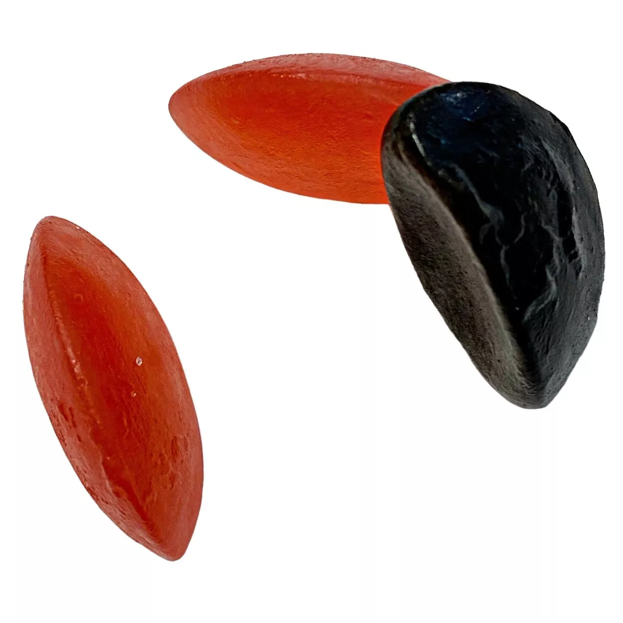 Zucker, Glukosesirup, Gelatine, Säureregulator E330, Süßholzextrakt, Pflanzenöl (Kokosöl), Überzugsmittel E901, Aromen (Anisöl, Vanillin), Farbstoffe E120, E153 |