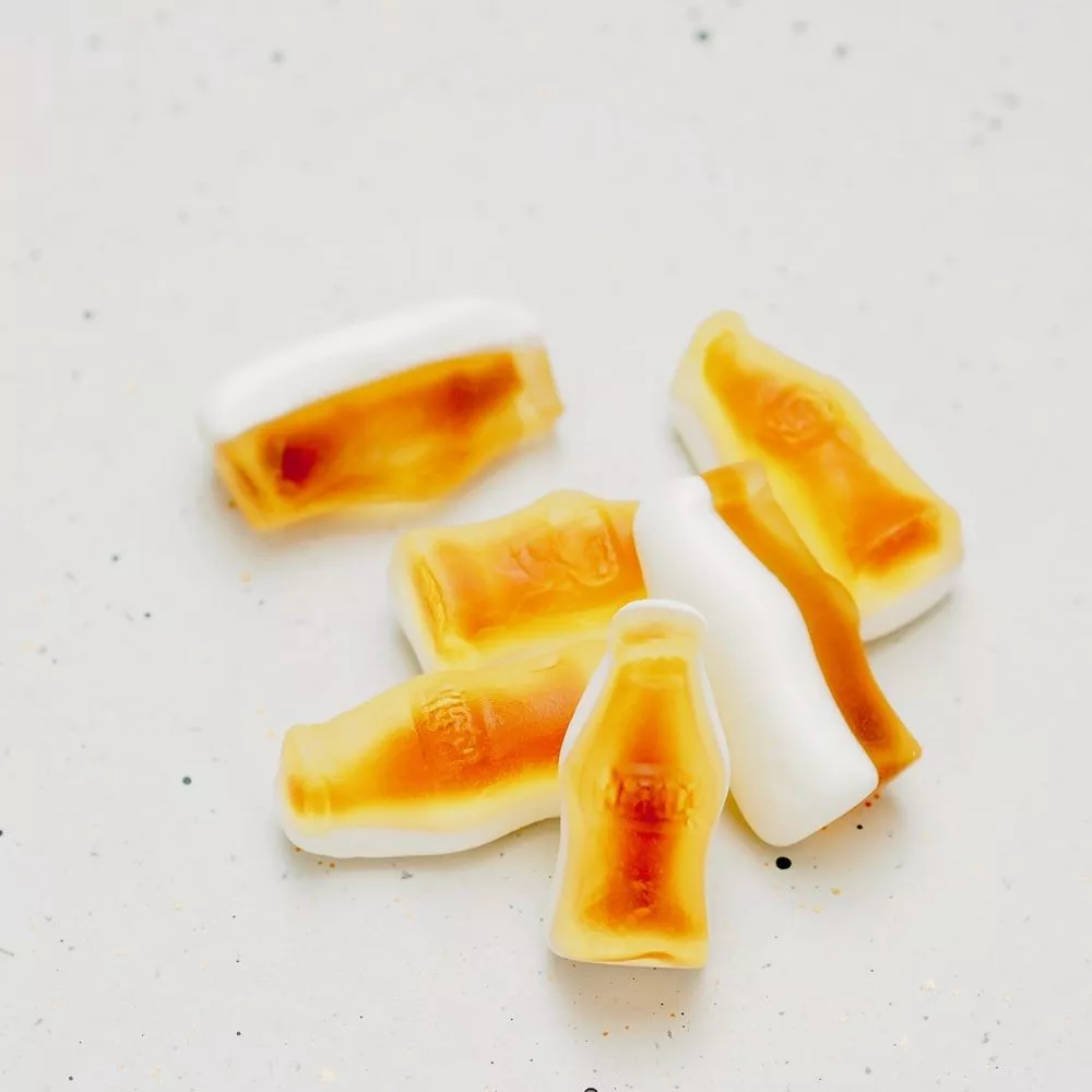 Glukosesirup, Zucker, Glukose, Gelatine, Citronensäure, Aroma, Oberflächenbehandlungsmittel, Säuerungsmittel, karamellisierten Zucker, Stabilisator. |