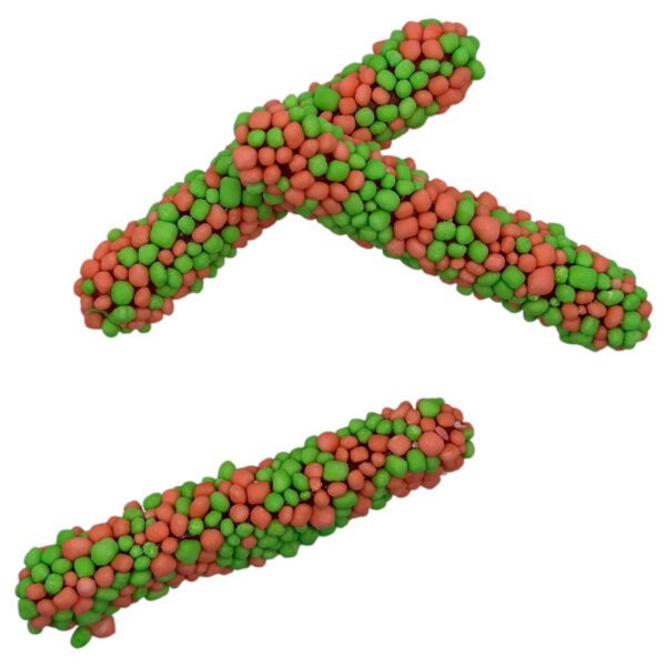 GEEKS WORMS GREEN & PINK – FRUCHTGUMMI-STÄBCHEN MIT KNUSPRIGEM ZUCKERDRAGÉE