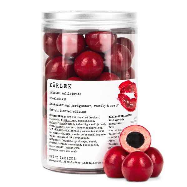 Haupt Lakrits Kärlek – Salzlakritz mit weißer Schokolade, Erdbeeren, Vanille & Rosen (250 g)