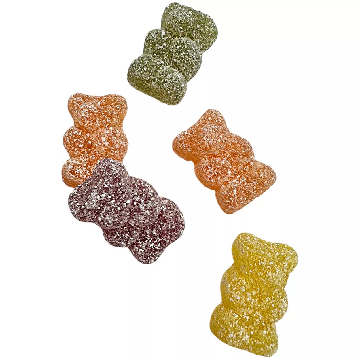 Glukosesirup, Zucker, Stärke, Gelatine, Säuren (Milchsäure, Apfelsäure), Säureregulator (Natriummalate), natürliche Aromen, Konzentrate aus (schwarze Karotte, schwarze Johannisbeere, Saflor, Spirulina), Farbstoffe (Paprikaextrakt, Kurkumin). |
