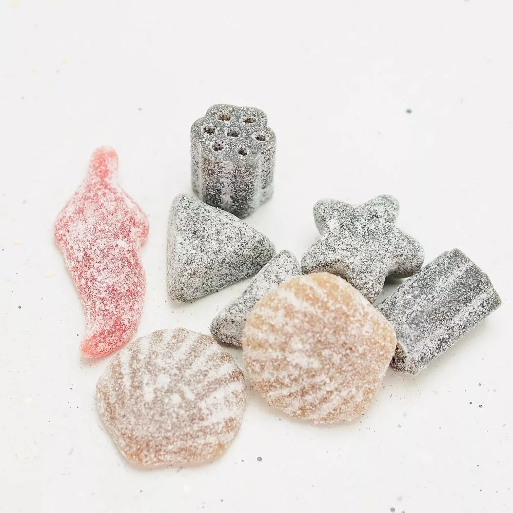 Zucker, Glukosesirup, Glukose-Fruktose-Sirup, Stärke, Weizenmehl, modifizierte Stärke, Ammoniumchlorid, Süßholzextrakt, Feuchthaltemittel (Sorbit, Glycerin), Farbstoff (E153, E150c, E120), Salz, Aromen, Stabilisatoren (E471). |