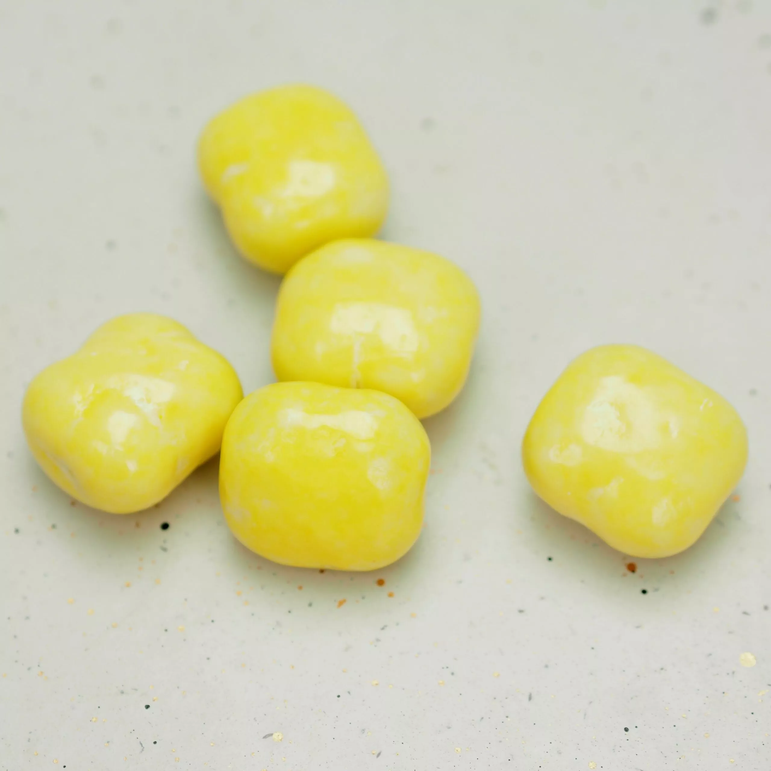 Zucker, Melasse, Weizenmehl, Glukosesirup, Süßholz-Extrakt, Aroma (Ammoniumchlorid), pflanzliches Kokosöl, Stabilisator (Sorbit), modifizierte Kartoffelstärke, Farbstoff (Pflanzenkohle), natürliches Anisaroma, Zucker, Kakaobutter, Vollmilchpulver, Molkenpulver, Laktose, Zitronensaft (1, 2%), Emulgator (Sojalecithin), natürliches Vanillearoma, natürliches Zitronenaroma, Pflanzenfarbkonzentrat (Saflor), Oberflächenbehandlungsmittel E904, Glucosesirup, modifizierte Tapiokastärke, pflanzliche Öle (Kokosnuß, Rapssamen) in variierenden Anteilen. Die weiße Schokolade enthält mindestens 25% Kakaoanteil. Kann Spuren von Haselnuss, Cashew, Paranuss, Pecan und Mandeln enthalten. |