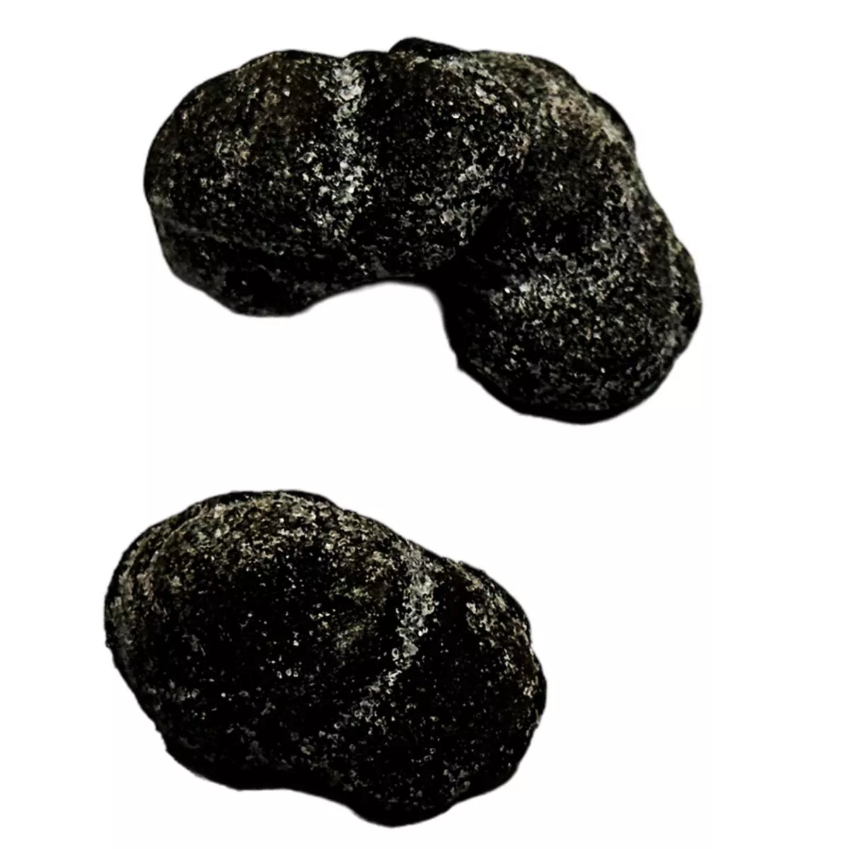 Zucker, Glukosesirup, Gelatine, Aroma (Ammoniumchlorid), Süßholzextrakt, Salz, vollgehärtetes Sonnenblumenöl, Farbstoff E153, Aroma (Anis), Säureregulator E330. |
