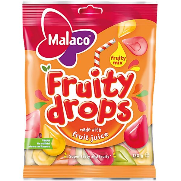 Malaco Fruity Drops Fruity Mix – vegane Fruchtgummis mit Birnensaft (170g)
