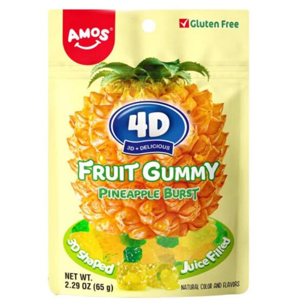 Amos 4D Fruit Gummy Pineapple Burst – Fruchtgummi mit Ananasgeschmack (65g)
