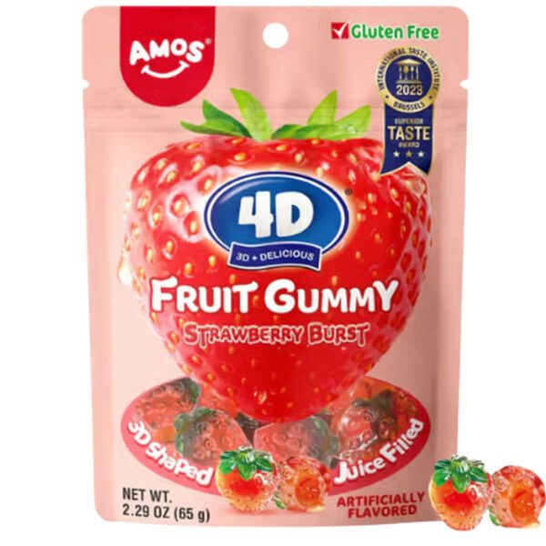AMOS 4D Fruit Gummy Strawberry Burst – Fruchtgummi mit Erdbeerfüllung (65g)