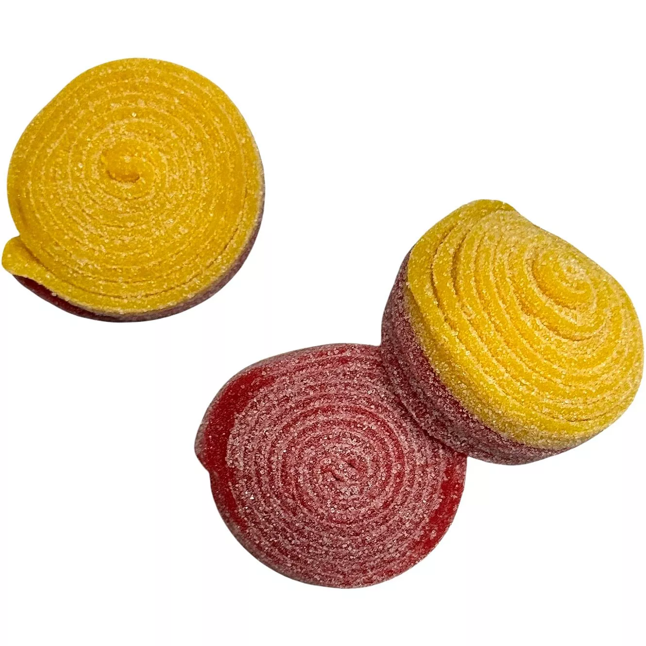 Zucker, Glukose-Fruktose-Sirup, Weizenmehl (enthält Gluten), Säuerungsmittel: Apfelsäure, Zitronensäure, Milchsäure, Dextrose, Kokosnussöl, Antioxidationsmittel: Ascorbinsäure, Aroma, Farbstoffe: E100, E120. Kann Spuren von Milch, Soja, Senf enthalten. |