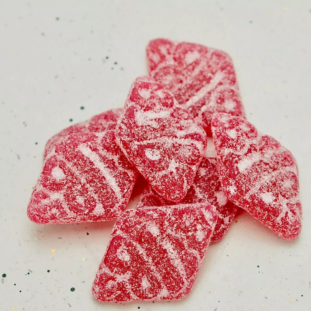 Zucker, Glukose-Fruktose-Sirup, Wasser, Maisstärke, Säureregulatoren (Apfelsäure, Natriumcitrat), Aromen, Farbstoffe (schwarzes Karottenkonzentrat). |