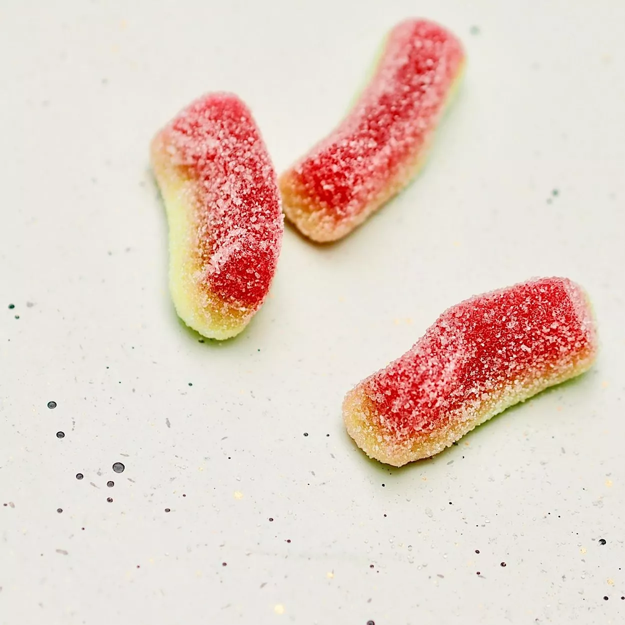 Glukosesirup, Zucker, Wasser, Gelatine (Rind), Maisstärke, Feuchthaltemittel (Sorbitol), Säure (Citronensäure, Milchsäure), Aromen, Farbstoffe (E100, E120, E141) |