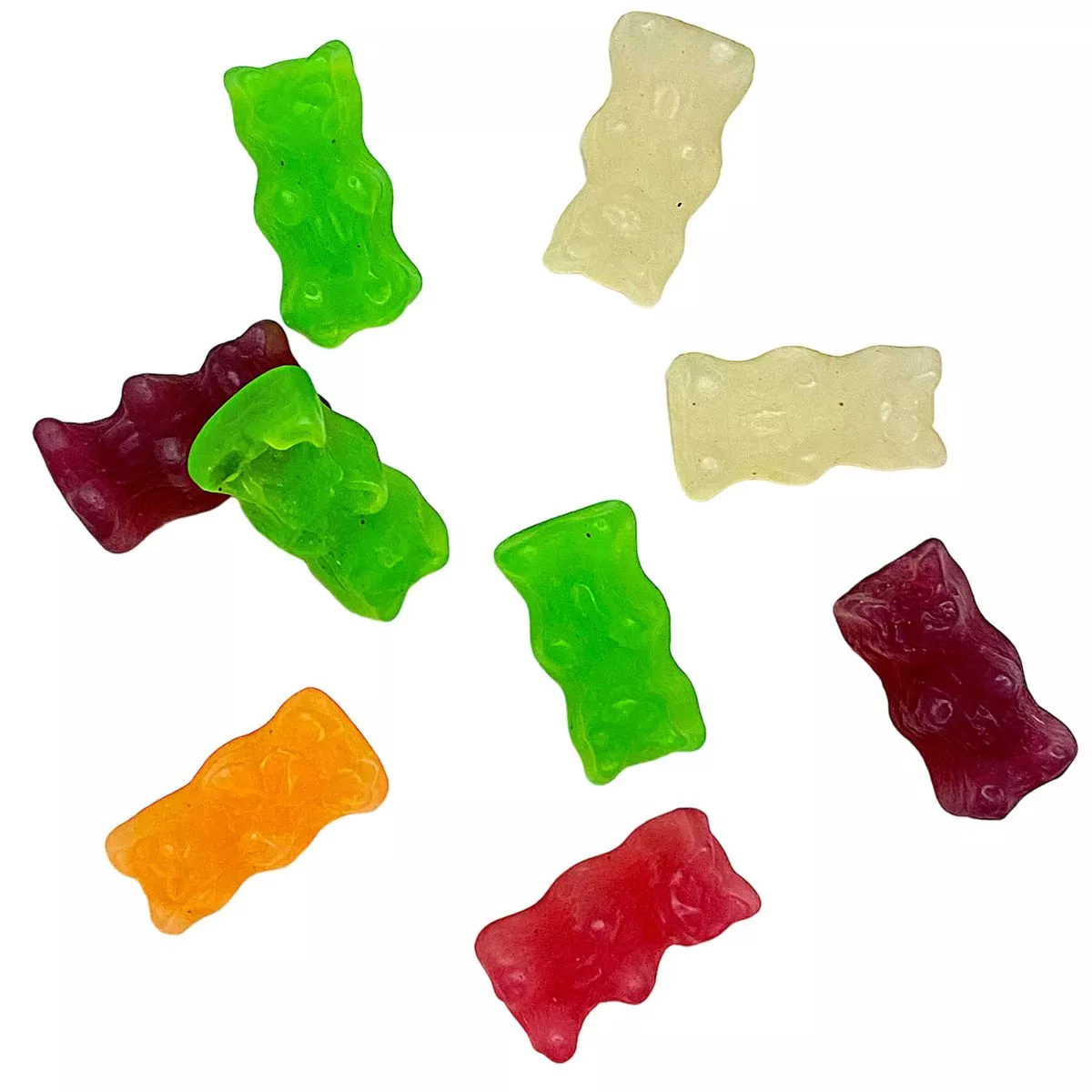 Zucker, Glukosesirup, Weizenstärke, Wasser, modifizierte Maisstärke, Modifizierte Kartoffelstärke, Säuerungsmittel (E270, E296, E330), Aromen, Schwarzes Karottensaftkonzentrat, Trauben (Konzentrat), Farbstoffe (E100, E133, E160c), Pflanzenöl (Kokos), Überzugsmittel (Carnaubawachs).Enthält Gluten |